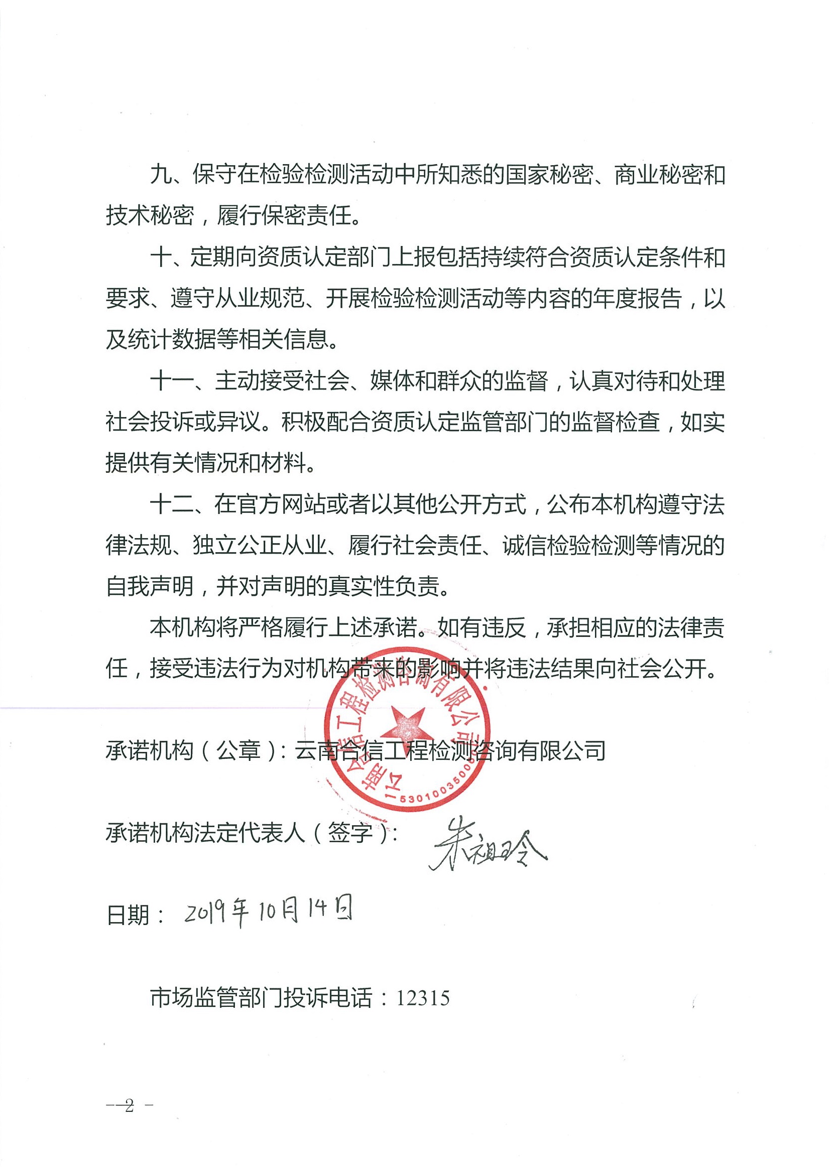 云南省檢驗(yàn)檢測(cè)機(jī)構(gòu)質(zhì)量誠信承諾書