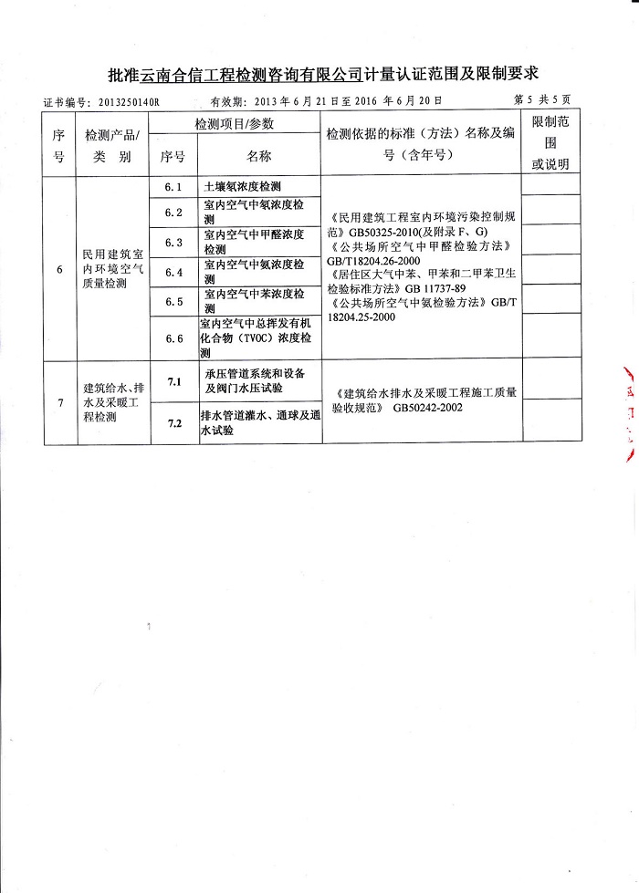 云南合信工程檢測咨詢有限公司建筑給水排水、采暖工程相關檢測能力: