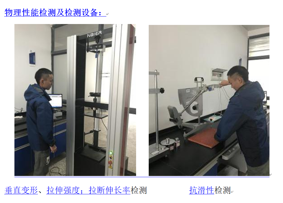 滑動(dòng)阻力測(cè)定儀、塑膠跑道沖擊吸收和和垂直變形試驗(yàn)機(jī)、老化箱、氣象色譜儀、原子吸收分光光度計(jì)、環(huán)境氣候箱、可見分光光度計(jì)、微機(jī)控制電子萬(wàn)能試驗(yàn)機(jī)、采樣