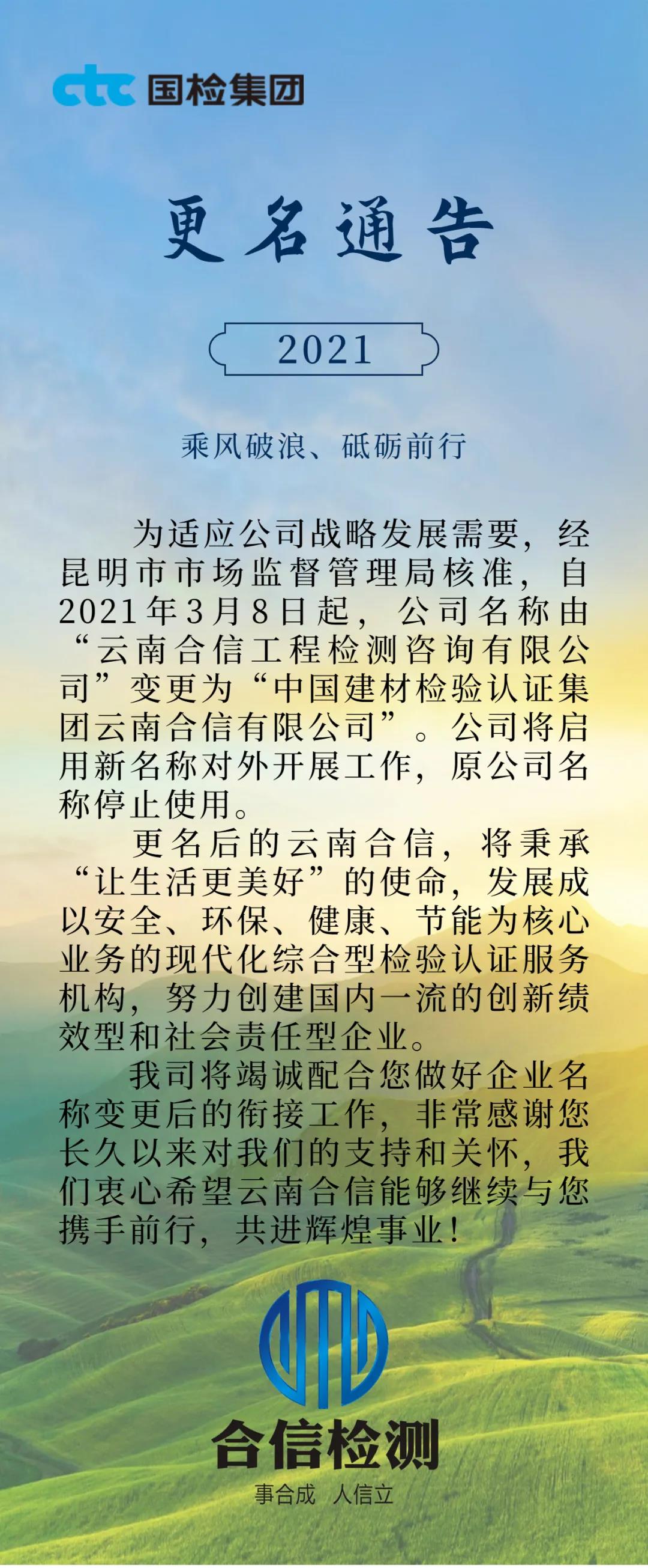 國檢集團(tuán)·云南合信﹣公司名稱變更通告