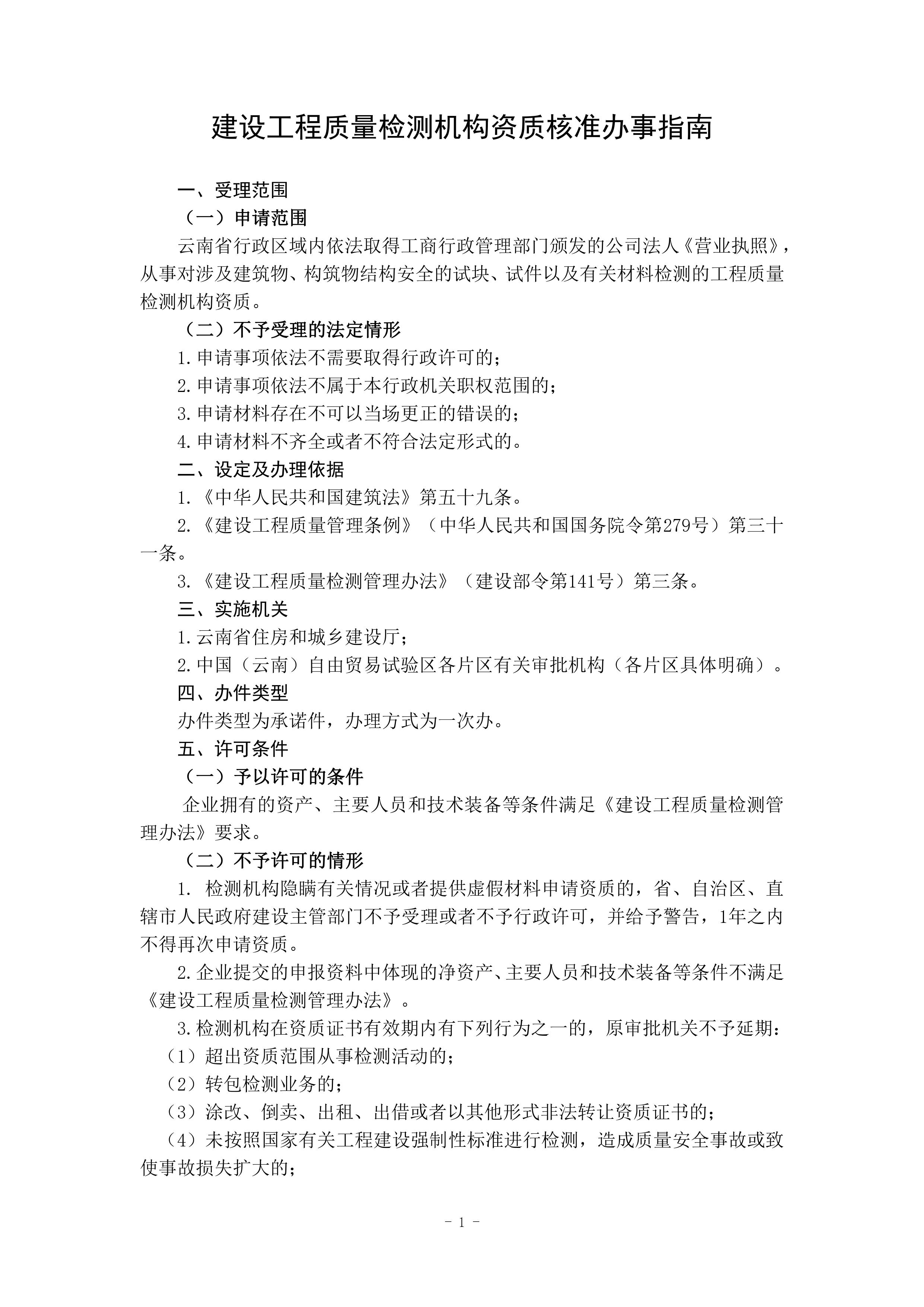 根據(jù)《云南省人民政府關(guān)于調(diào)整482項涉及省級行政權(quán)力事項的決定的通知》(云政發(fā)〔2020〕16 號)、《云南省人民政府關(guān)于調(diào)整112項涉及州級及以下行政權(quán)力事項的決定》(云政發(fā)〔2020〕21號)、《云南省人民政府辦公廳關(guān)于公布云南省省級政務(wù)服務(wù)事項(2020年版) 的通知》(云政辦發(fā)〔2020〕39 號)、《云南省人民政府關(guān)于向中國(云南)自由貿(mào)易試驗區(qū)各片區(qū)管委會下放第一批省級管理權(quán)限的決定》(云政發(fā)〔2020〕34號)等文件精神,省住房城鄉(xiāng)建設(shè)廳于2021年1月20日對涉及省級下放自貿(mào)區(qū)各片區(qū)的“建筑施工企業(yè)安全生產(chǎn)許可證核發(fā)”等9項政務(wù)服務(wù)事項辦事指南和業(yè)務(wù)手冊進(jìn)行了編寫或修訂,現(xiàn)將“建設(shè)工程質(zhì)量檢測機構(gòu)資質(zhì)核準(zhǔn)業(yè)務(wù)手冊和辦事指南(完整版)”發(fā)布如下: