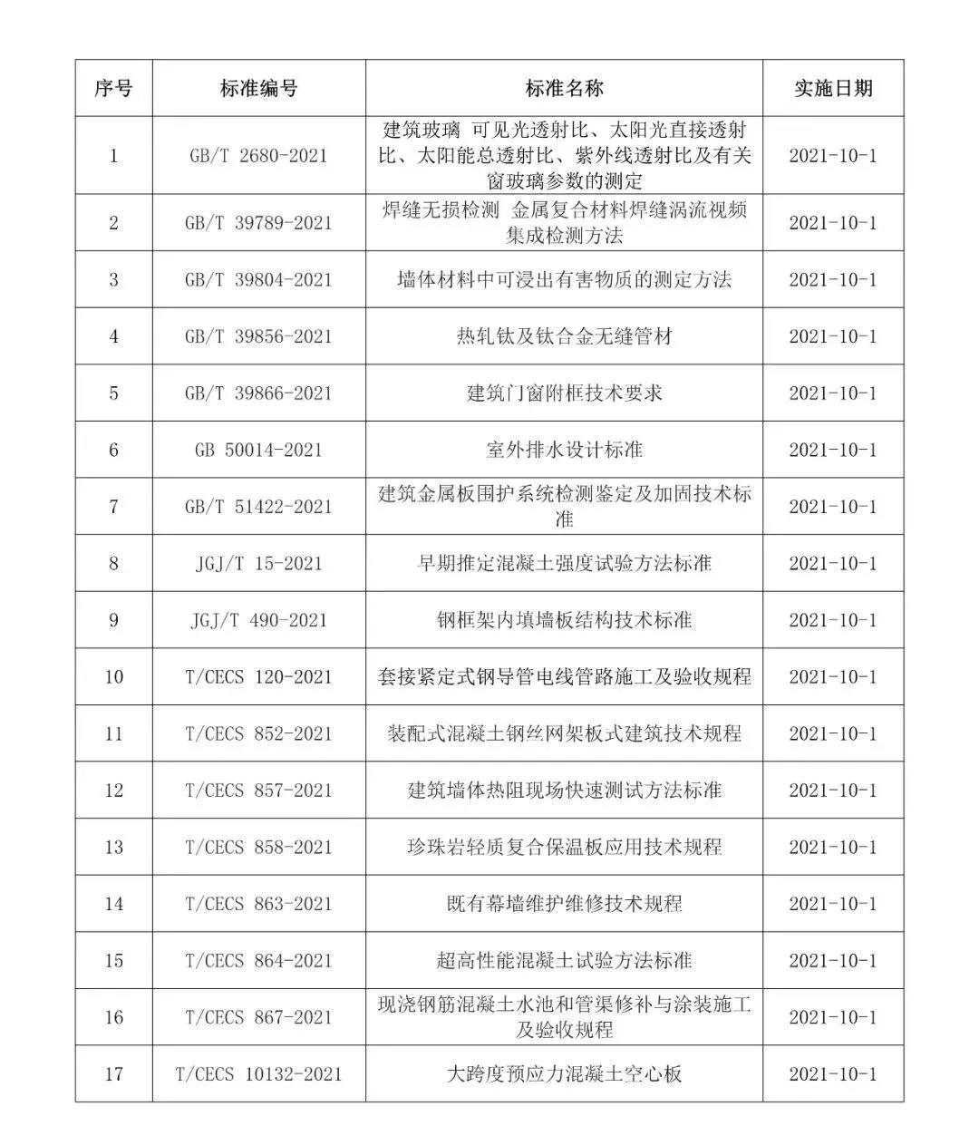 2021年10月開始實(shí)施的工程建設(shè)標(biāo)準(zhǔn)