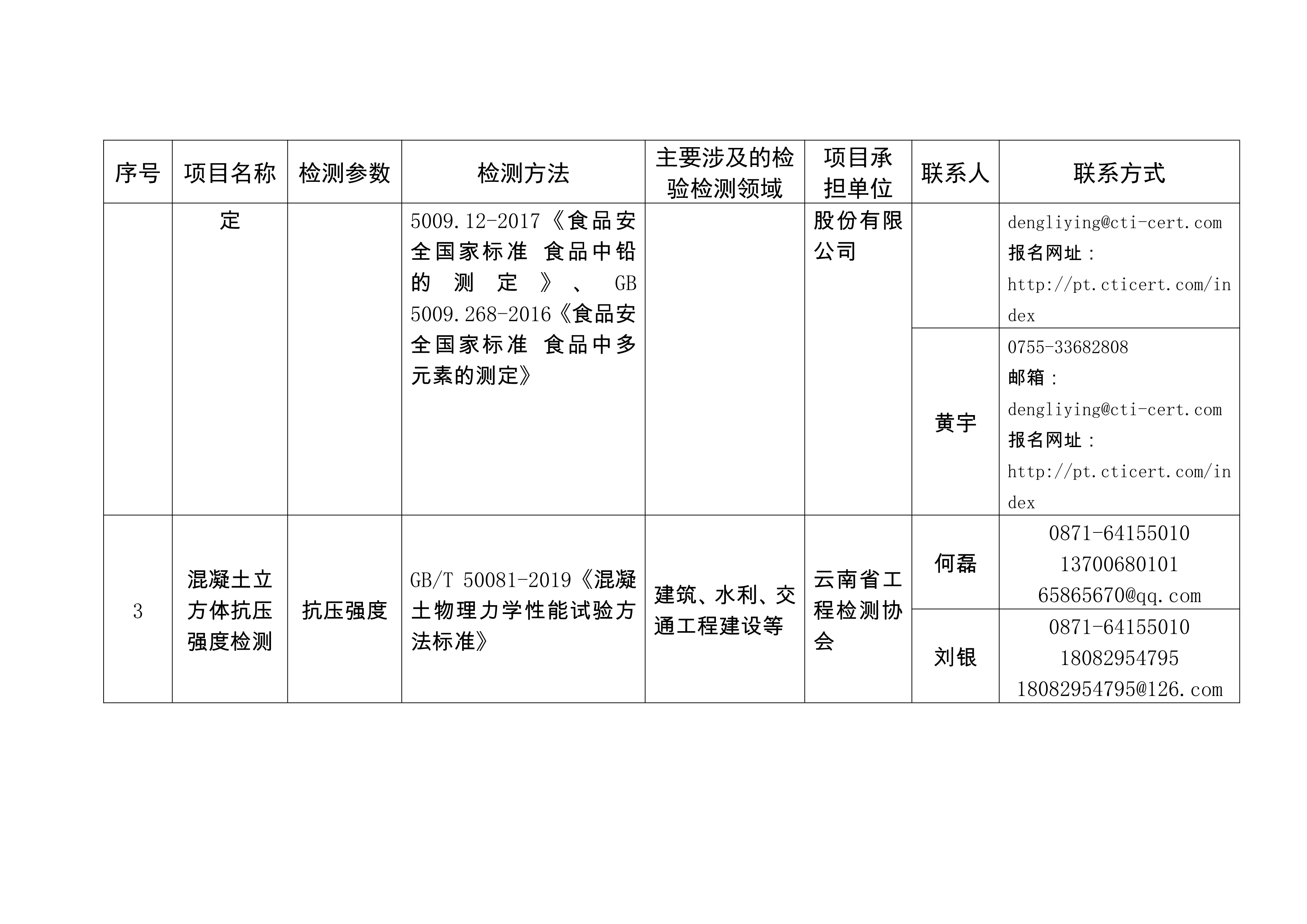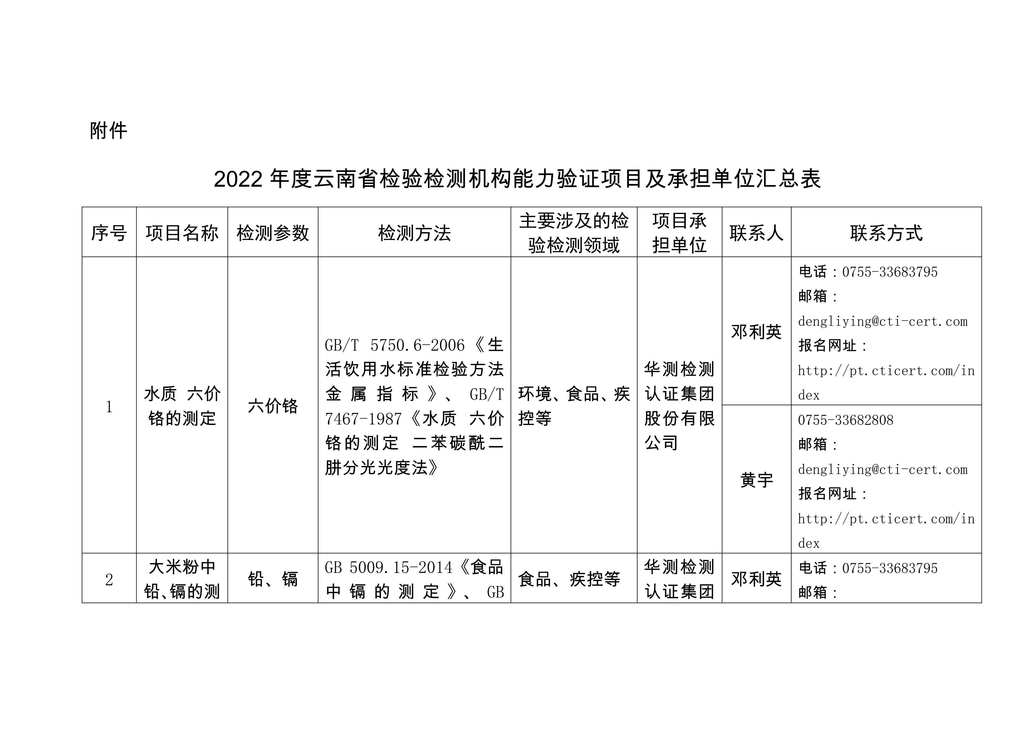 附件:2022年度云南省檢驗(yàn)檢測(cè)機(jī)構(gòu)能力驗(yàn)證項(xiàng)目及承擔(dān)單位匯總表
