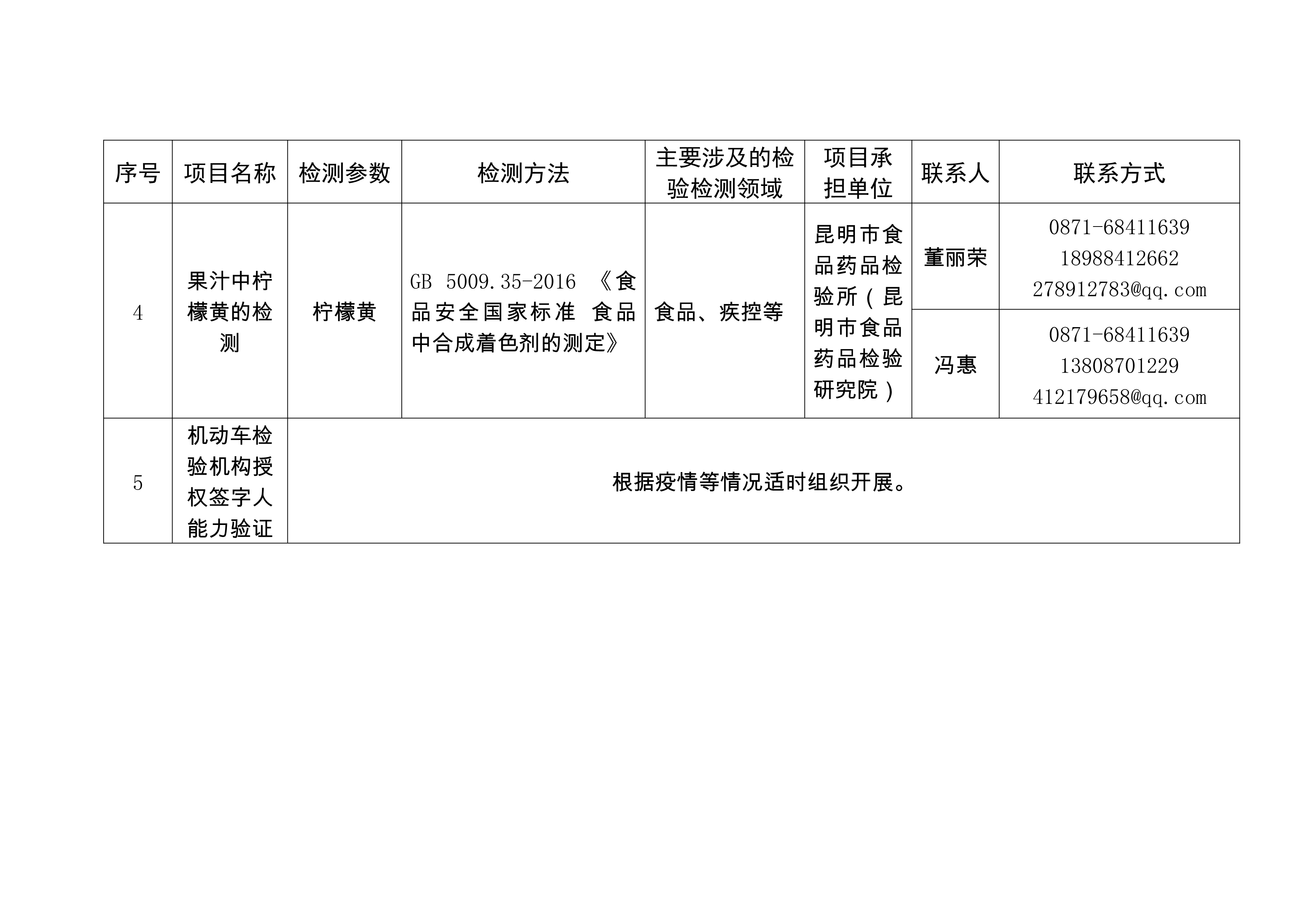 能力驗(yàn)證項(xiàng)目費(fèi)用由云南省市場(chǎng)監(jiān)督管理局承擔(dān)(果汁中檸檬黃的檢測(cè)項(xiàng)目除外)。