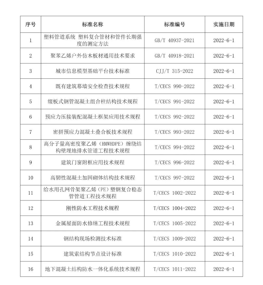 2022年6月開(kāi)始實(shí)施的工程建設(shè)標(biāo)準(zhǔn)