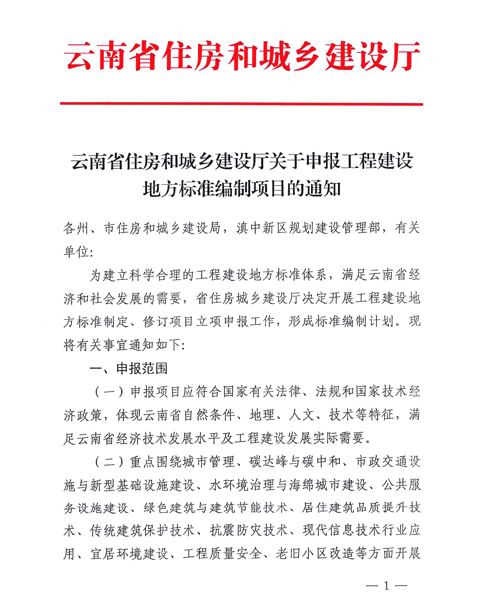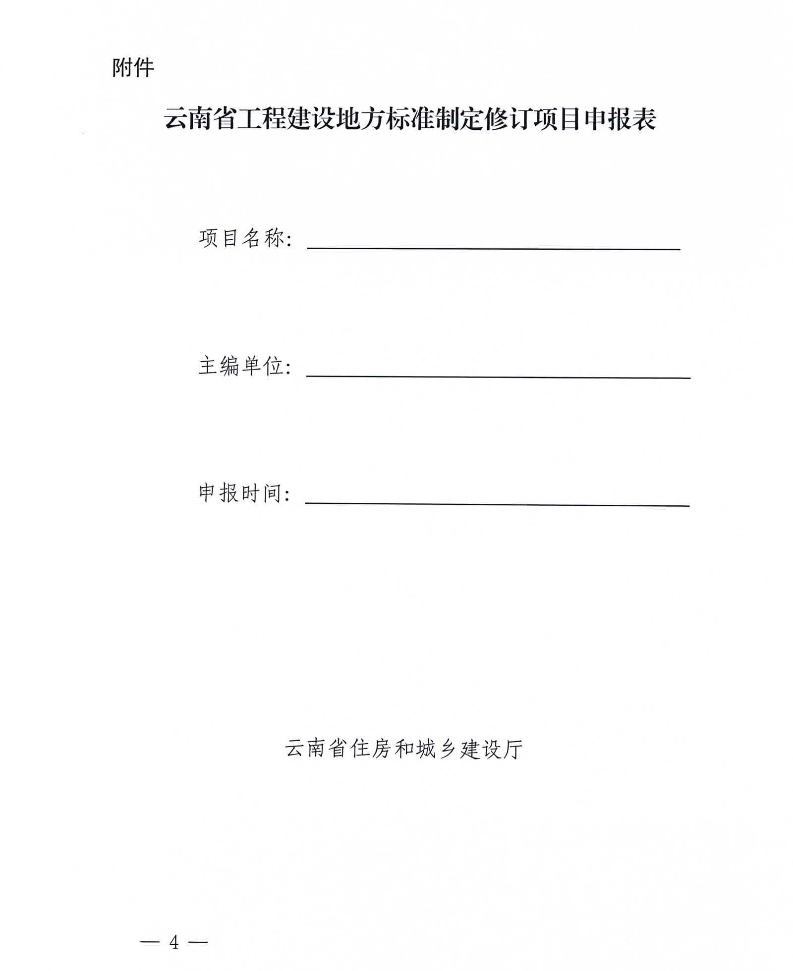 云南省住房和城鄉(xiāng)建設(shè)廳關(guān)于申報工程建設(shè)地方標(biāo)準(zhǔn)編制項目的通知