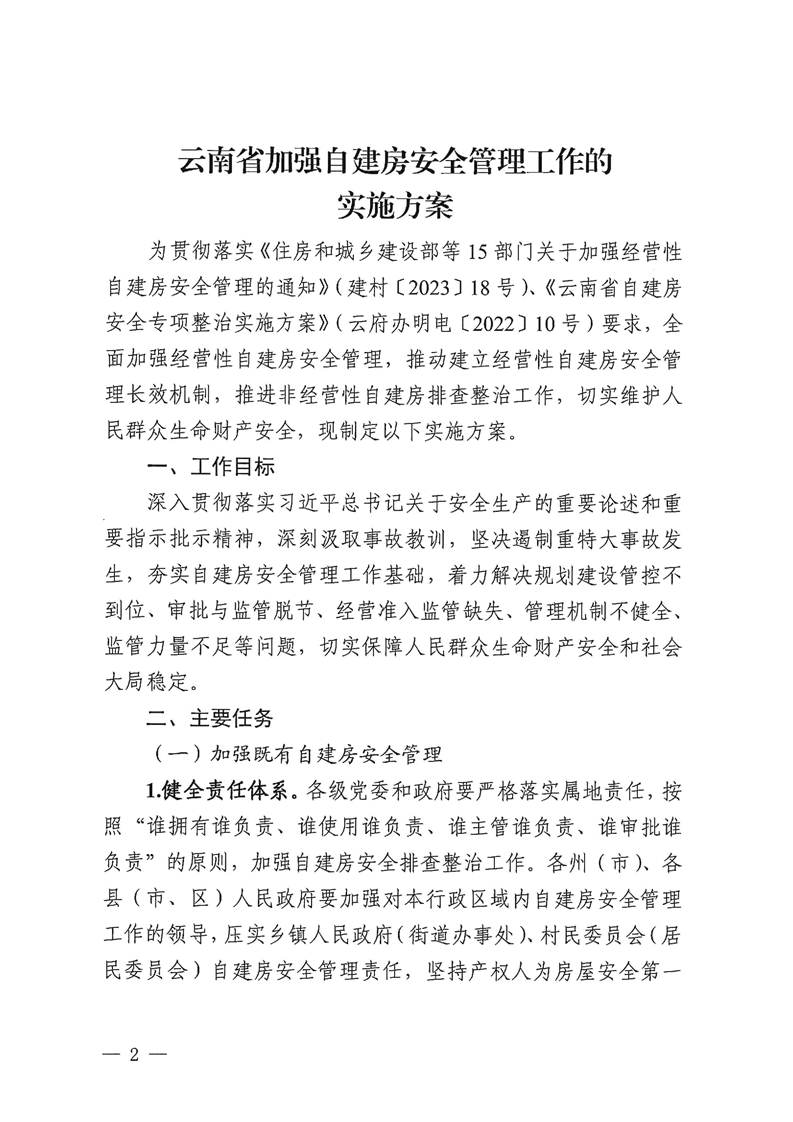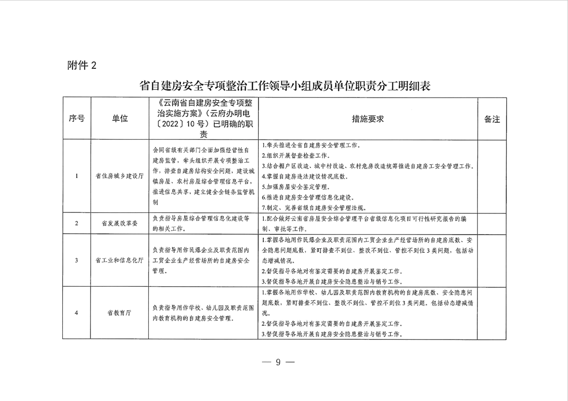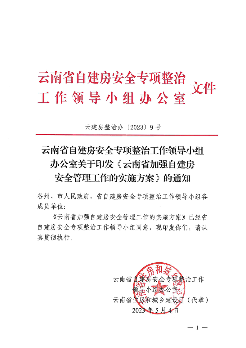 云南省自建房安全專項(xiàng)整治工作領(lǐng)導(dǎo)小組辦公室關(guān)于印發(fā)《云南省加強(qiáng)自建房安全管理工作的實(shí)施方案》的通知